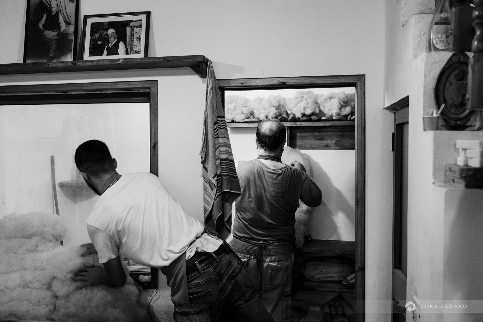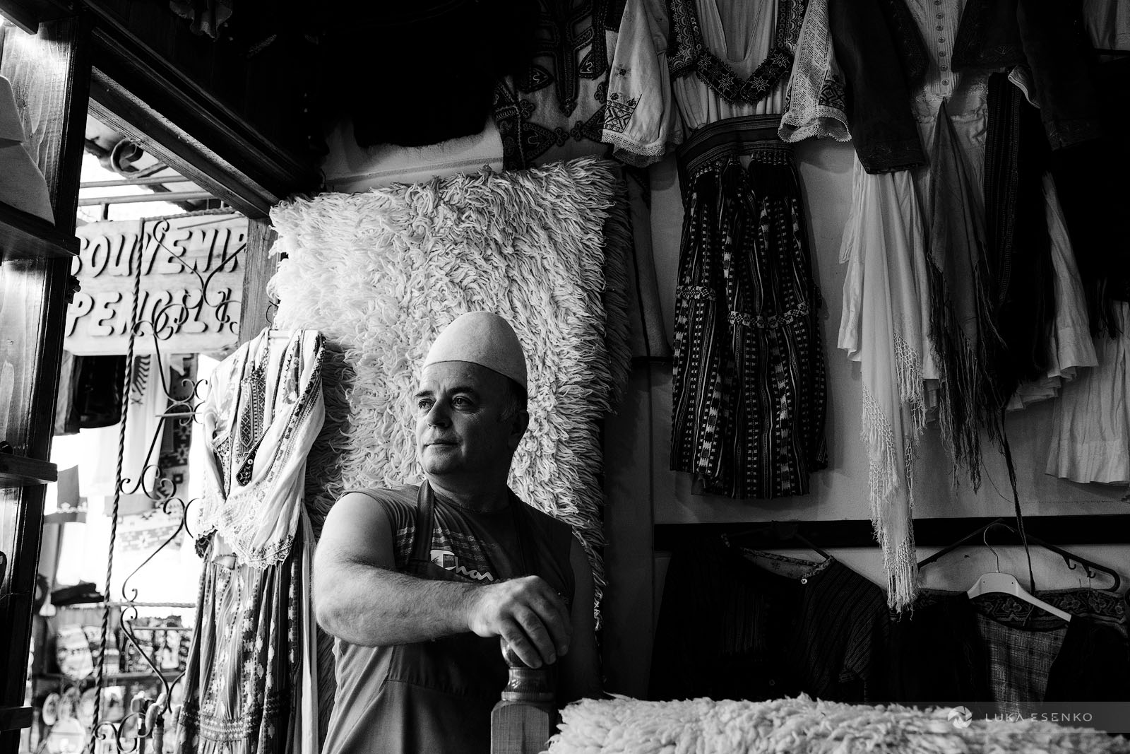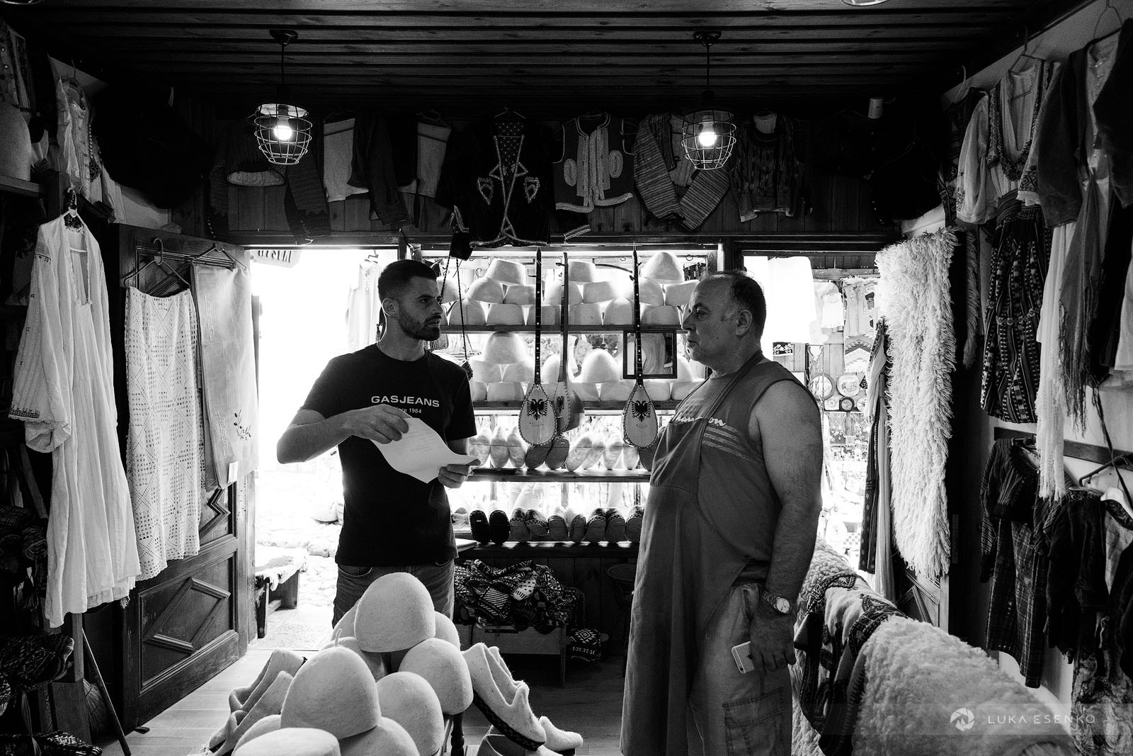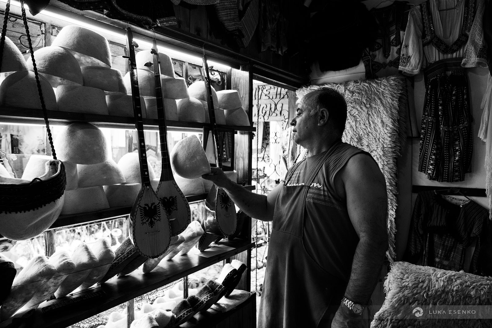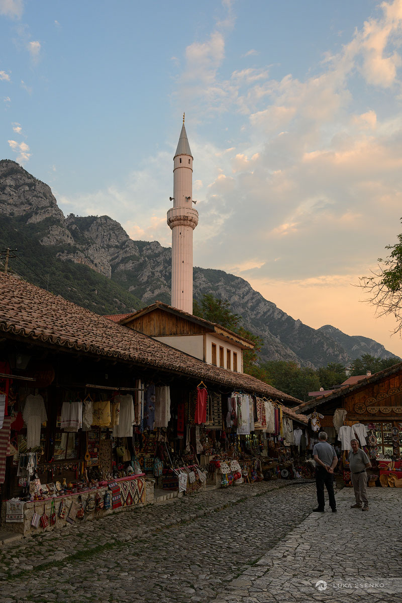 I spent two days in Kruje while scouting Albania for future photo workshops. I chose this town for its historical significance, scenic location, and traditional crafts. Kruje is known for preserving two traditional crafts: carpet weaving and Albanian hat making. The felt hat, locally known as qeleshe or plis, has been produced for generations at the Qeleshepunues Hyseni workshop. Ndriçim Guni and his son Ardian continue to craft felt hats and slippers using traditional, centuries-old methods in their workshop, located in the heart of the old bazaar in Kruje (Pazari i Vjetër i Krujës).