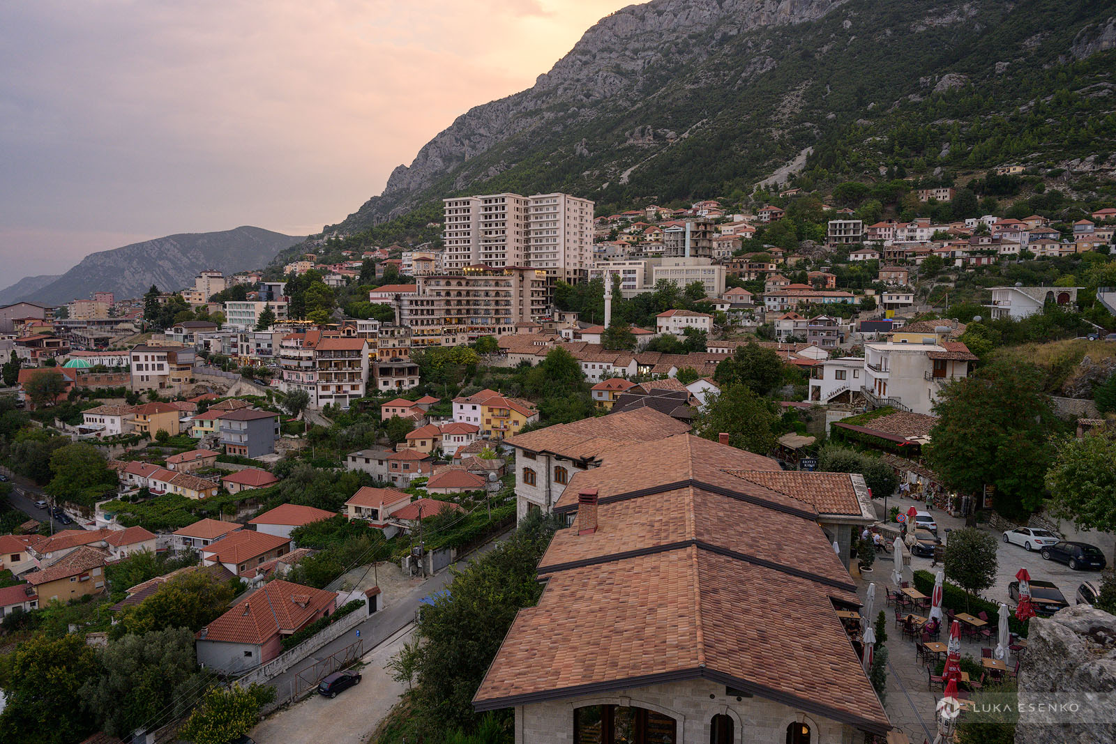 Krujë is built on hills—there is no flat ground, only up or down hill! The centrally located Hotel Panorama is not only the most convenient in terms of location but also offers stunning views of the fortress and the town. The view from their rooftop terrace is particularly beautiful at sunset. I opted to stay in my rooftop tent, so I booked a charming little campsite above the city called Ledinga. The owner, Lipi, is fantastic—super helpful and passionate about the city. If you visit early in the season, he might even have some organic olive oil for sale.