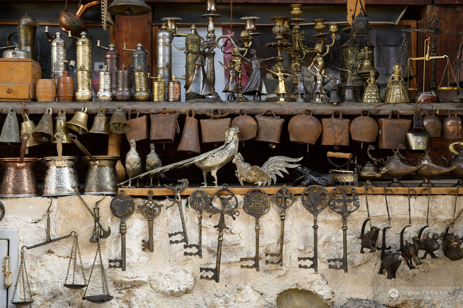 Ndriçim inherited both his craft and the workshop from his father, and he is now training his son, Ardian, to carry on the tradition. This has been the way of their family for generations, with each member involved in the business in some capacity. Ndriçim and Ardian handle the production and procurement, while Ardian’s wife, Clementina, manages the shop upstairs and assists in the workshop when needed. Ndriçim’s wife operates their second souvenir shop, Souvenir Guni, also located in the Old Bazaar.