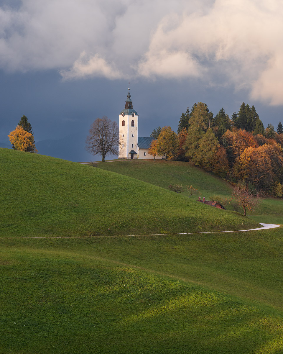 My first trip was to the hilltop church of Sveti Ožbolt (St Oswald), tucked somewhere between Polhov Gradec and Škofja Loka. This lesser-known spot is one of my favourites — peaceful, a little off the radar, and for reasons I still don’t understand, completely ignored by photographers. I’ve never met a single one up there.