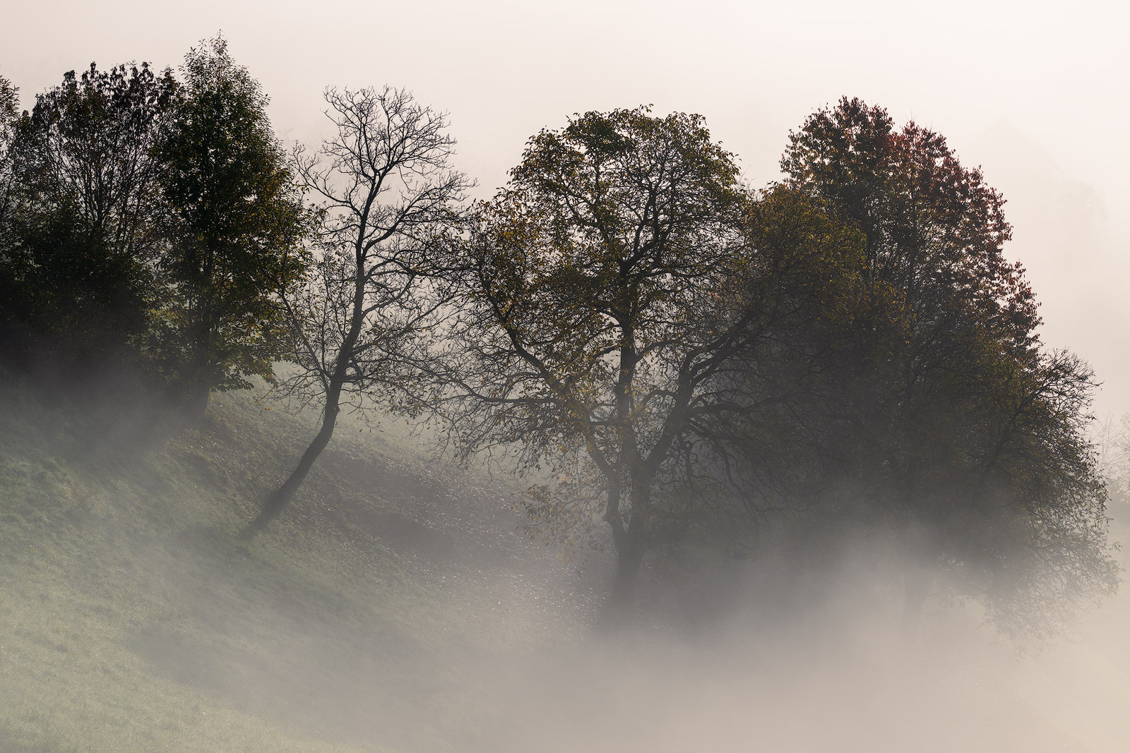 The wide views were beautiful, but the images I loved most weren’t the grand landscapes at all. What really caught my eye were the quieter, more intimate scenes: trees dissolving into the fog, forested slopes fading into layered greys, and those minimal, almost abstract moments you only get on mornings like this.
