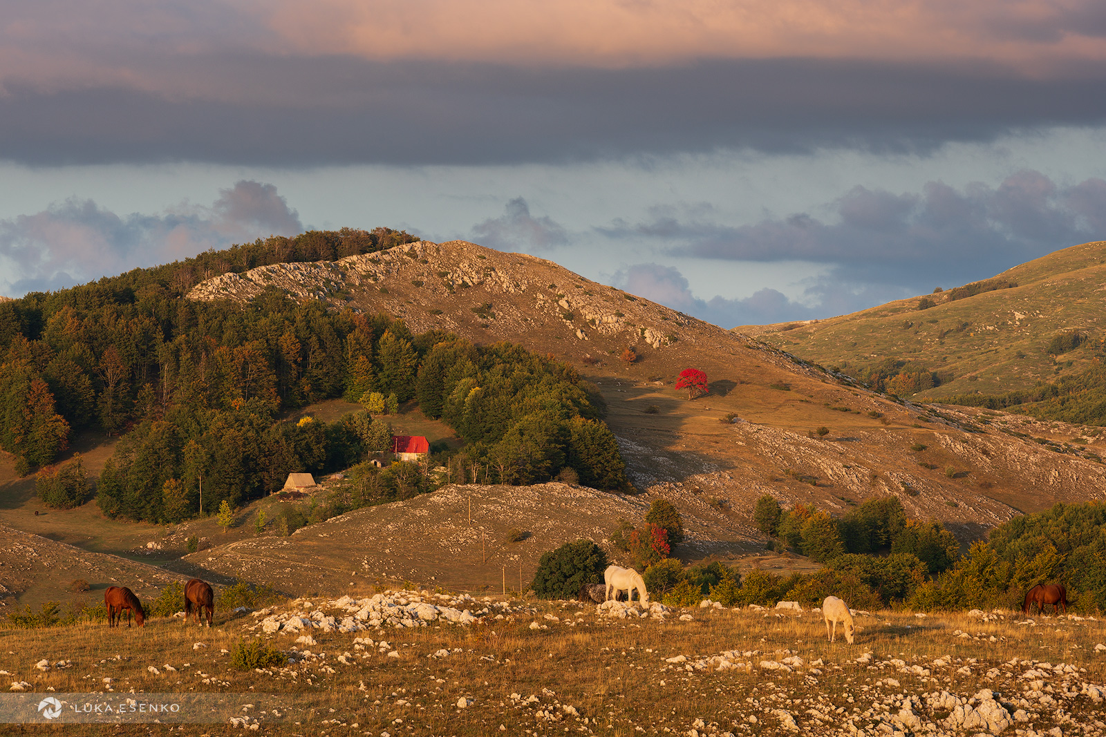 During my Mountains of Montenegro photography workshop, we were photographing fall colours in Durmitor National Park. As we were driving around in the late afternoon, we stumbled upon a herd of horses grazing freely in the mountain meadows. The light was beautiful, so we stopped to photograph them.