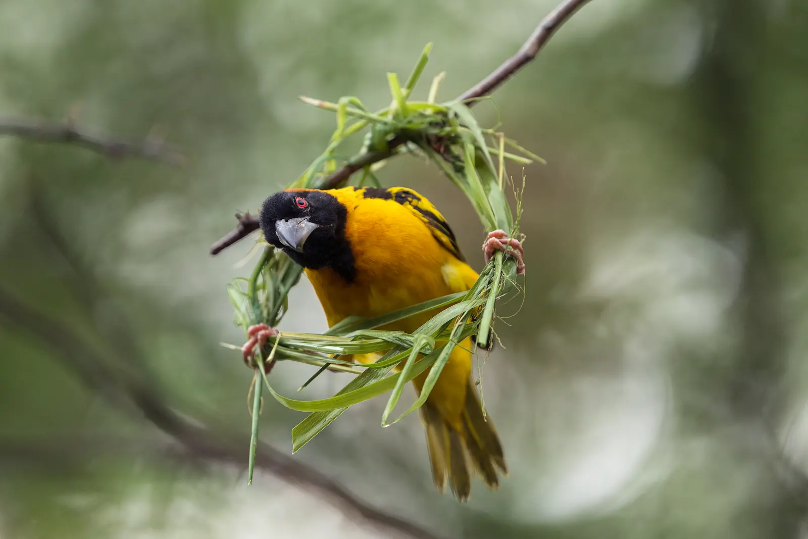 It was fascinating to follow individual birds as they started building. One single blade of grass. That’s all it takes to begin. They attach it to a branch and start weaving. First, a loose loop. Then a stronger circle. Slowly, it becomes more structured, more rounded, layer upon layer, until it turns into a perfectly formed hanging nest. All done with their beaks, working with incredible speed and precision.