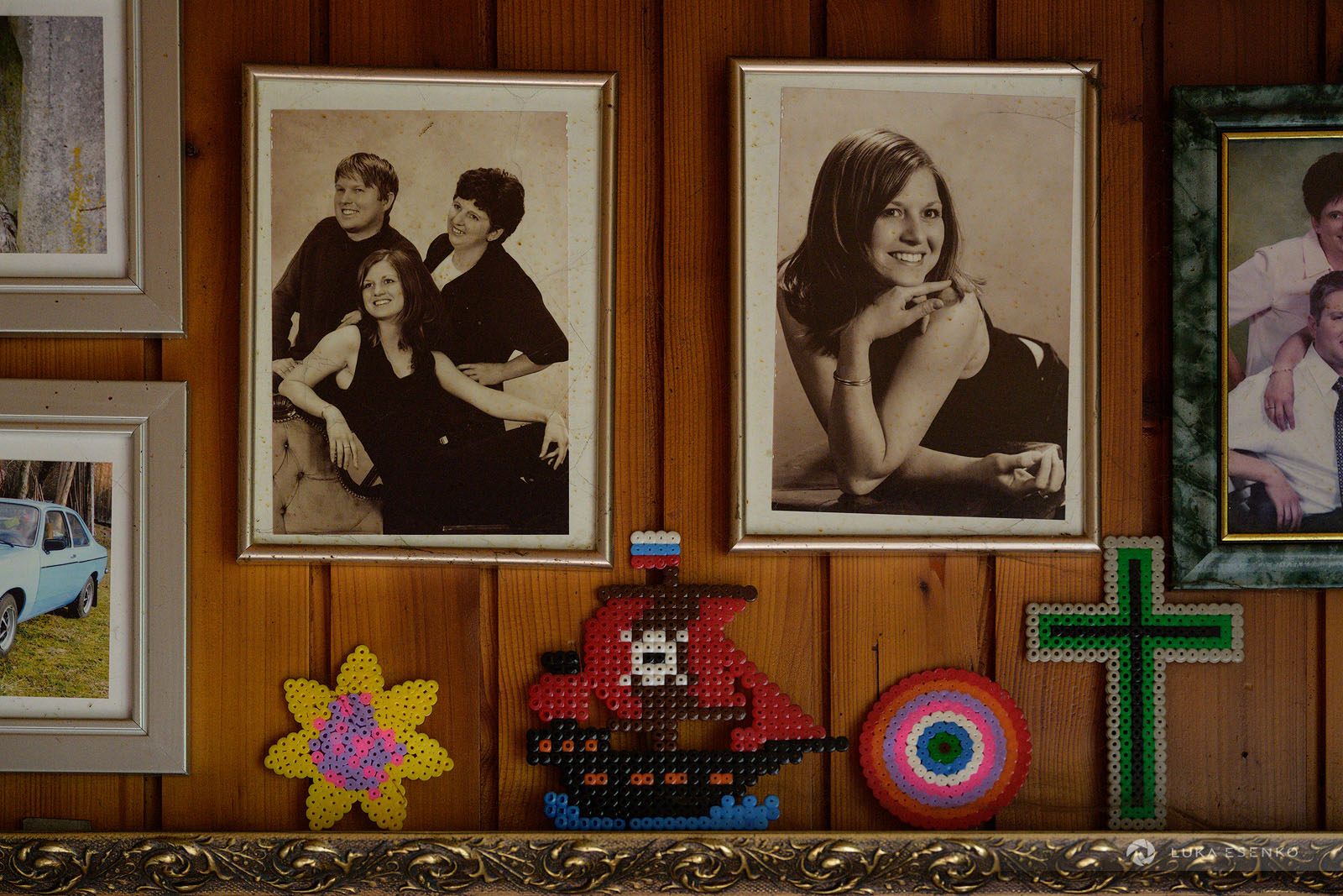 This little village caught our eye as we drove through, especially a small church with a wooden roof that made us stop. While walking around, we met Nada and started a conversation. She told us her family name is Klepec and pointed to a house with a mural of Peter Klepec, a folk hero from Bela Krajina whose fairytale I loved as a child. Nada warmly invited us into her historic home and gave us a tour. Over coffee and sadjevec, she shared stories about her family, her divorce, and how she now lives in the house with her brother. She proudly showed us photos of her daughter and son, who had their graduation portraits taken at the famous Demšar photo studio in Ljubljana. Nada and her brother, Stane, still make žganje (brandy) in the traditional way, and every year they take part in Koline, when they slaughter a pig and make meat products for their home.