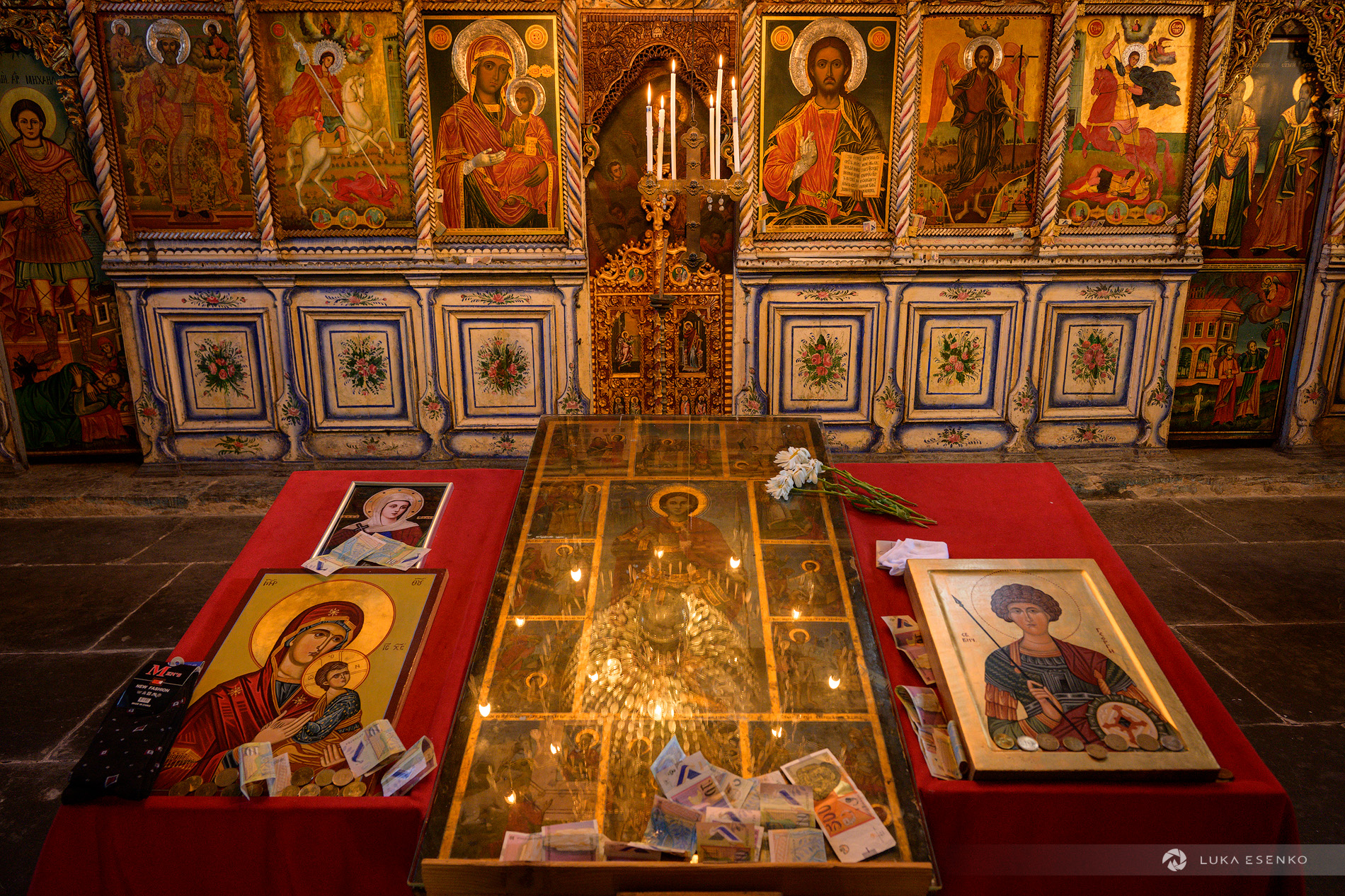 The next morning we prepared an easy breakfast, packed our campsite and returned to the village. We walked to the church, which was now open for the Sunday ceremony. Built in 1841 by a local leader named Gjurčin Kokale, the Church of St. George (Црква Св. Ѓорѓија) was designed to look like a fortress to protect the villagers from bandit raids, which were common in the “Wild West” days of the Ottoman Empire. The exterior is all tough, defensive stone, but the inside is pure art. It features a stunning iconostasis and vibrant frescoes painted by Dicho Zograf, the most famous Mijak painter of the 19th century.