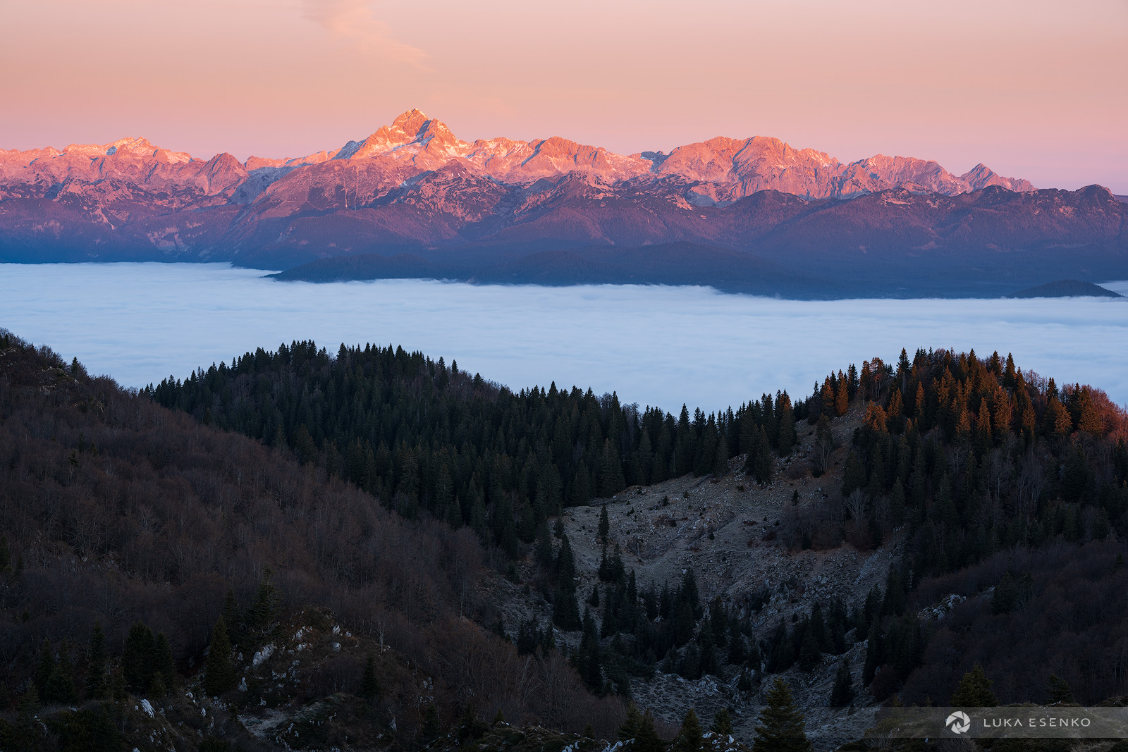 Ratitovec has multiple peaks and the naming can be a bit confusing. Altemaver is the highest peak with 1678m above the sea level. Other peaks are named Kreman, Gladki vrh and Kosmati vrh. The best viewpoint for photographers is Altemaver because of its interesting ridge. This is great for wide angle shots for an interesting foreground. There are great views from the nearby of the mountain hut (Krekova koča). The sharp rocks just below the hut are also a great foreground – you will pass them if climbing up from Ptrovč or Torka directions.