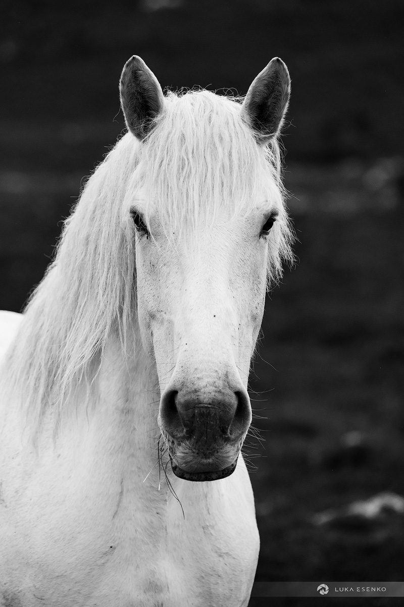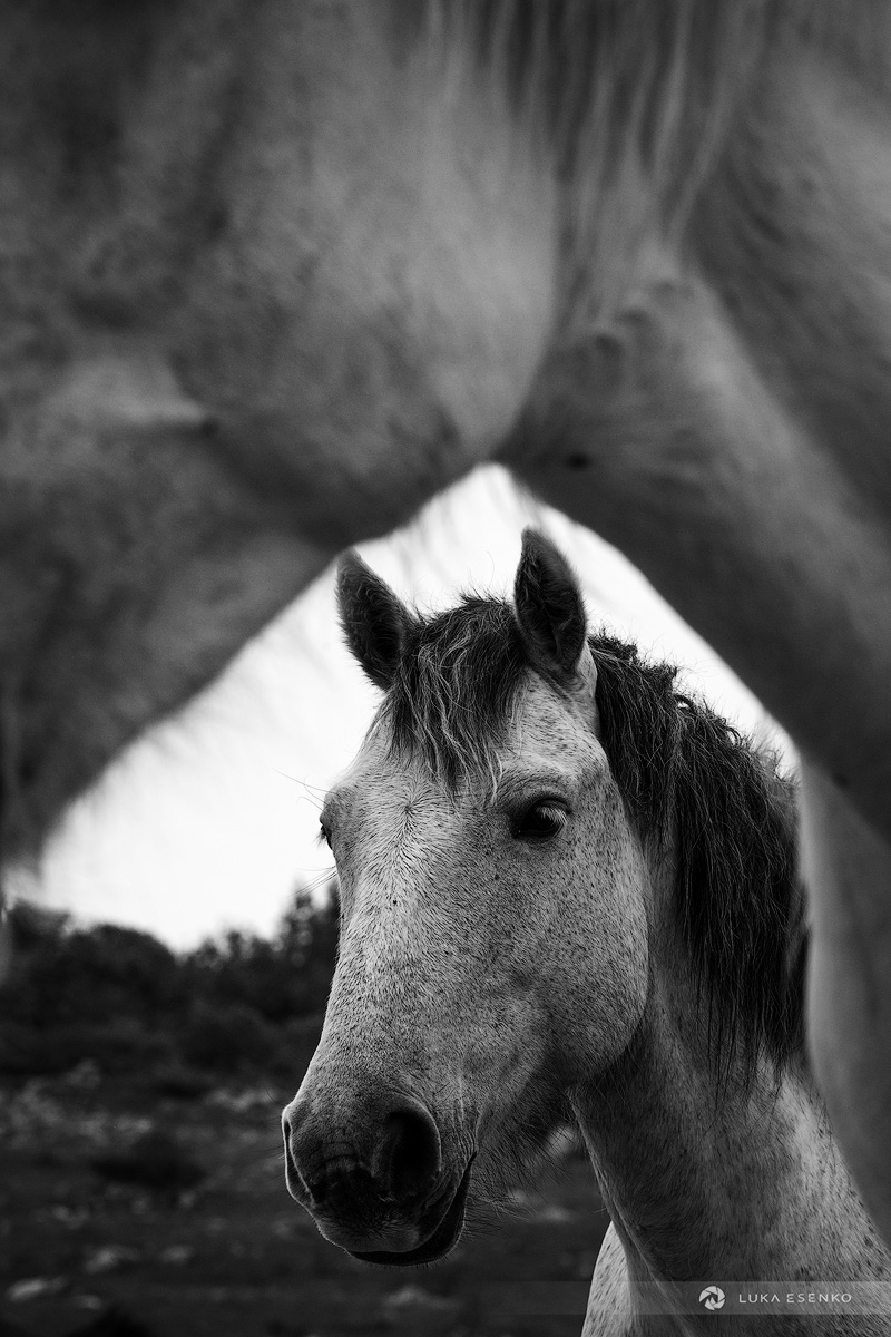 I arrived at Velebit in the late afternoon, just after a heavy rain had stopped. Although the sky was still cloudy, it was slowly beginning to clear. The horses were supposed to be near Novi Vinodolski, grazing around the meadows of the mountain, about 20 minutes from the town. As I drove around the area, I soon spotted them. Many horses were grazing close to the road, so I stopped to observe. They were curious and approached me. Since the light was fading I simply enjoyed their company, leaving photography for the next day.