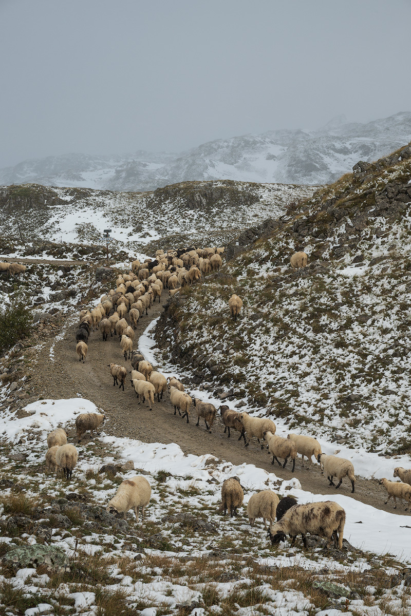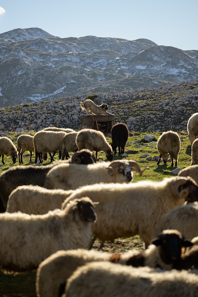 The shepherd’s name was Darko and he was collecting sheep to bring them to safety. He explained that this is the end of the season, winter has arrived, and there is nothing left for the sheep to feed on up here. He was also trying to get ahead of the heavier snow forecast for the week ahead.