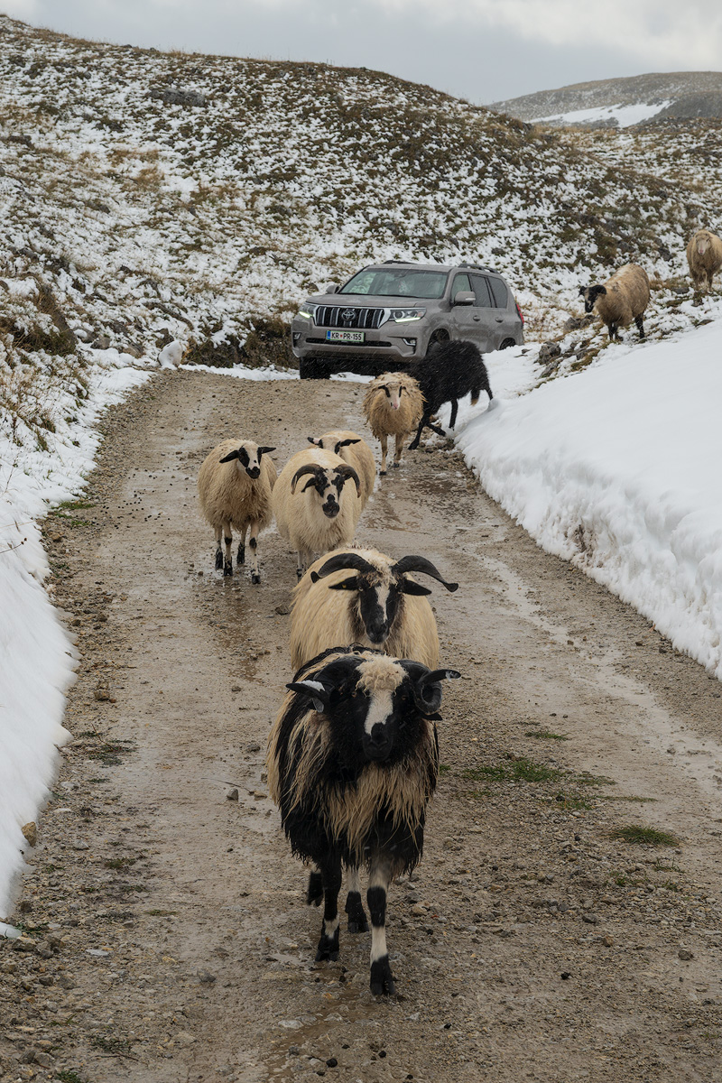 Sinjajevina was not on our itinerary this time. We were leaving Durmitor National Park behind, travelling toward Biogradska Gora. The usual road connecting the two parks had been closed due to a rockfall, which had completely destroyed part of the route. That forced us to detour south. As we drove, I remembered a small mountain road leading up to Sinjajevina and suggested we check the conditions up there. When we reached the top, we stepped straight into a mix of everything—strong wind, snow blizzard, rain, and occasional bursts of sunlight breaking through the clouds.